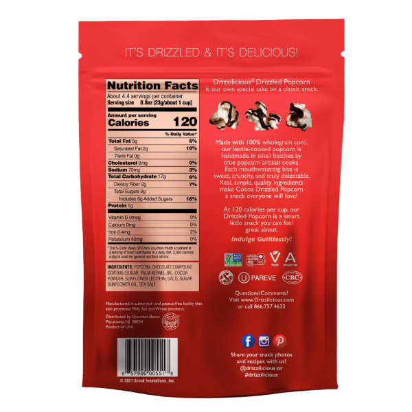 MMM…?Our 3.6oz Cocoa?Drizzled Popcorn?is the perfect size to munch on solo. or with a few friends! It’s a sweet and salty blast of crunchy chocolaty flavors. a true classic in the snacking world!