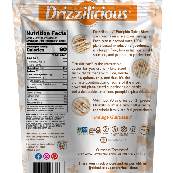 Drizzilicious?Pumpkin Spice bites are mini rice cakes reimagined!